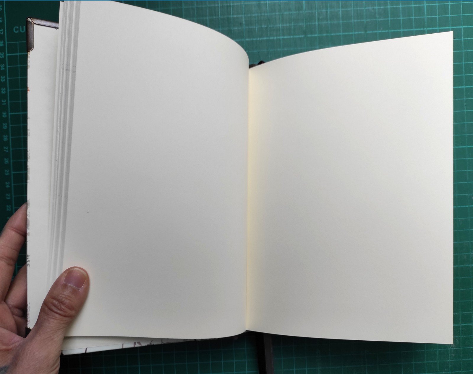 A5 méretű, 280 oldalas, 120 grammos papír, bőr, egyenes, bordázott gerinccel, könyvjelzővel.